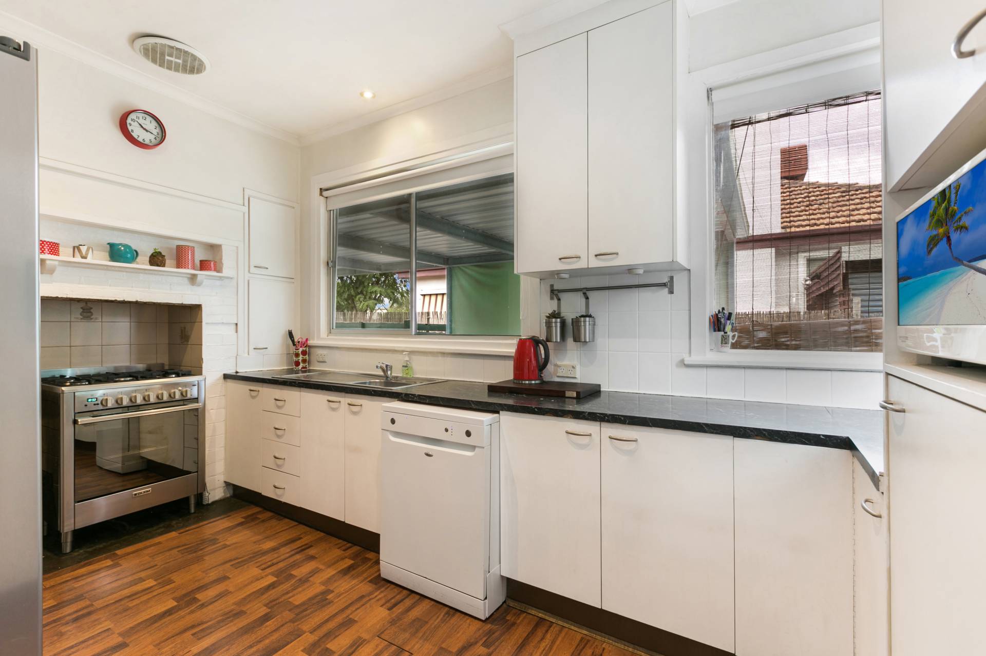 • Separate kitchen with an abundance of cupboard & bench space, 5 burner gas stove and a dishwasher